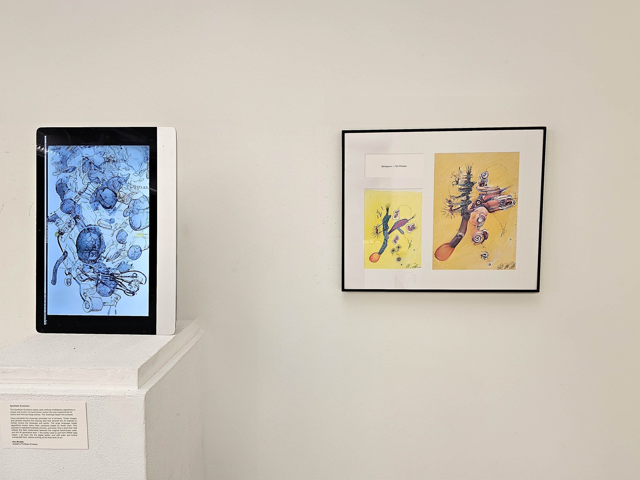 Right Synthetic Evolution works and left the training sets for the AI renditions at the the 934 Gallery 2025.